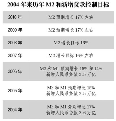 亦有媒體稱,2011年廣義貨幣供應(yīng)量M2增速目標(biāo)將在16%左右;金融機(jī)構(gòu)新增貸款目標(biāo)規(guī)模可能為7.5萬億左右,但這一目標(biāo)規(guī)模目前尚未最終確定。