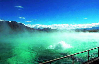 地殼運(yùn)動造就了世界屋脊,同樣也造就了最火爆的地?zé)豳Y源。羊八井位于拉薩西北方,西藏念青唐古拉山下的盆地內(nèi),占地面積約15平方公里。兩側(cè)是高聳入云的皚皚雪山、冰川,中間盆地則是一汪汪火熱的溫泉。不遠(yuǎn)萬里來這里“享!钡,沒有人失望而歸。