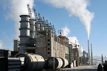 青海一化工廠廠區(qū)一角。記者 駱曉飛/攝 |