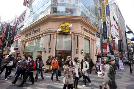 3月2日,人群經(jīng)過(guò)韓國(guó)首爾明洞購(gòu)物區(qū)的一家服裝店門(mén)口。韓國(guó)統(tǒng)計(jì)廳發(fā)表數(shù)據(jù)顯示,受食品和能源相關(guān)產(chǎn)品價(jià)格大漲的影響,韓國(guó)2月份消費(fèi)者價(jià)格指數(shù)同比上漲4.5%,漲幅創(chuàng)下27個(gè)月來(lái)最高值。