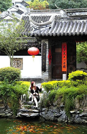 在村口的“章記租船”租上一艘小船,沿著逢簡水道,可以看到一座用紅色石料建成的單孔石拱古橋,上面用篆書刻出“金鰲”二字,這就是傳說中康熙皇帝賜建的“金鰲橋”。整條古村透露著清幽的古韻。