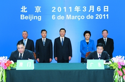 廣東省人民政府和澳門特別行政區(qū)政府6日在人民大會堂簽署了《粵澳合作框架協(xié)議》。雙方在協(xié)議中提出,將攜手建設亞太地區(qū)最具活力和國際競爭力的城市群,共同打造世界級新經(jīng)濟區(qū)域,促進區(qū)域經(jīng)濟一體化發(fā)展。