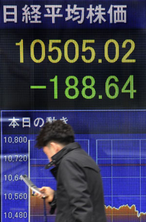 東京股市日經(jīng)股指跌破10500點(diǎn)大關(guān)