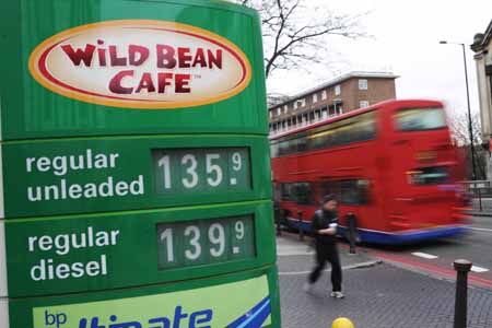 3月10日,在英國倫敦,汽車和行人從一座加油站旁經(jīng)過。英國汽油價格3月9日創(chuàng)下歷史新高,超過六英鎊/加侖(或1.32英鎊/升,一英加侖約合4.546升)。新華社發(fā)