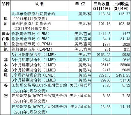 國際大宗商品期貨價格明細表[2011-03-14]