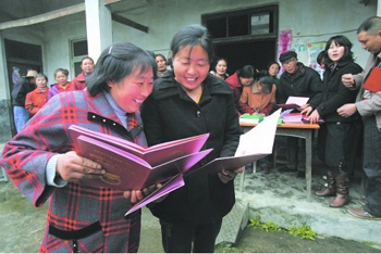 農(nóng)民高興地領(lǐng)到了證書!≠Y料照片 |