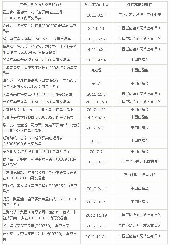 《可訴內(nèi)幕交易民事賠償案件一覽表》