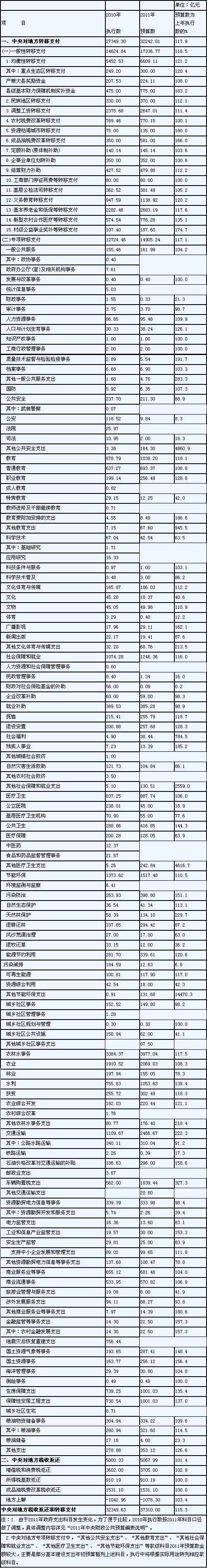 2011年中央對(duì)地方稅收返還和轉(zhuǎn)移支付預(yù)算表