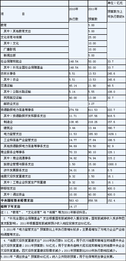 7.中央企業(yè)改革脫困補助支出30.5億元。主要用于支持企業(yè)改革脫困,幫助企業(yè)解決改革中的重點難點問題。包括:困難中央企業(yè)改革補助支出26億元;中央企業(yè)民口軍品配套生產線(設備)維持維護補助支出3億元;甘肅舟曲特大泥石流中央企業(yè)災后恢復重建1億元;青海玉樹地震中央企業(yè)災后恢復重建0.5億元。