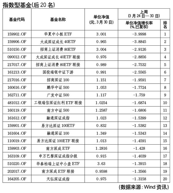 華夏中小板ETF"榮登"本周最差收益指數(shù)型基金榜首
