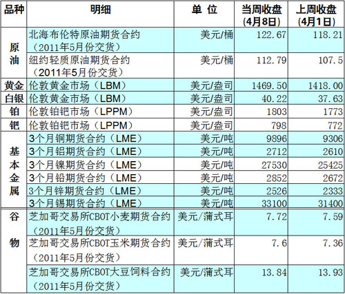 國際大宗商品期貨價(jià)格明細(xì)表[04-11]