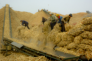 2003年5月,全國面粉行業(yè)的巨頭華龍公司投資5000萬元興建的面粉廠在伏道鄉(xiāng)開工,當年10月投產(chǎn),年加工優(yōu)質(zhì)小麥20萬噸,本地小麥隨到隨收,而且每公斤的價格比周邊地區(qū)要高。僅此一項,農(nóng)民一畝地就能增收二三十元。企業(yè)附近的伏道、白營等幾個鄉(xiāng)鎮(zhèn)還和企業(yè)簽訂了20萬畝的小麥訂單,糧食沒下種就找到了“婆家”。這一筆合同簽下來,幾近全縣小麥產(chǎn)量的一半。企業(yè)生產(chǎn)的下腳料也被附近農(nóng)民悉數(shù)拉走,做起了飼料加工的生意。同時,100多名“泥腿子”進廠成了上班族。世界500強企業(yè)新加坡益海嘉里集團在湯陰投資6000萬美元建成的項目,每天加工轉(zhuǎn)化小麥1200噸,每年要吃掉90萬畝小麥的產(chǎn)量,年銷售收入達6億元。公司項目經(jīng)理楊進東口氣很大:“湯陰及周邊縣的小麥我們都包了。”