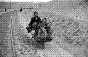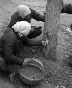 饑餓的災(zāi)民在剝樹皮