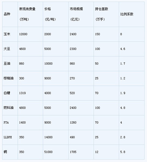 注:1.各品種的市場數(shù)據(jù)為大致估算值 2.比例系數(shù)=表觀消費(fèi)量/(持倉基數(shù)×合約交易單位) 3.在臨近交割期時(shí),交易所將根據(jù)焦炭期貨合約上市運(yùn)行不同階段調(diào)整交易保證金