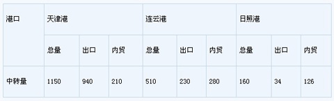 表1 2008年天津、日照、連云港焦炭中轉(zhuǎn)情況(單位:萬噸)