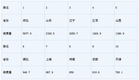 2.華北、山東及其周邊地區(qū)是我國鋼鐵企業(yè)最為集中的地區(qū),占我國焦炭消費總量的66%以上。2008年,我國焦炭消費總量2.35億噸,其中華北地區(qū)為0.87億噸,華東地區(qū)為0.69億噸,占當年消費總量的66.38%,其后依次為東北(0.25億噸)、中南(0.31億噸)和西南(0.16億噸)等地。 90%以上的焦炭用于高爐冶煉生鐵。如按行政區(qū)劃分,華東地區(qū)(包括山東省)高爐生鐵產(chǎn)能1.44億噸,是我國鋼鐵企業(yè)最集中的地區(qū),其次是華北地區(qū),鋼鐵企業(yè)高爐產(chǎn)能1.38億噸(如包括山東省將超過華東地區(qū)),華東、華北兩地區(qū)的生鐵產(chǎn)能占全國總產(chǎn)能的64%。這些鋼鐵企業(yè)主要集中在河北、山東、上海等地。
