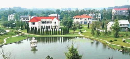 酒店的介紹里提到,“占地1050畝,其中800畝為森林公園”,如此大面積的公園竟是酒店的附屬設(shè)施。酒店除了208套客房外,還有“中、歐、日、意式等風(fēng)格各異的高檔別墅9幢……”。