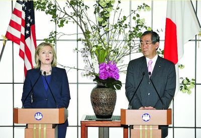 日本外相松本剛明17日與到訪的美國國務(wù)卿希拉里·克林頓舉行會談,雙方同意在平息福島第一核電站事故和災(zāi)后重建方面進行密切合作。松本說,日本正竭盡全力進行核燃料冷卻和防止放射性物質(zhì)擴散,期望今后繼續(xù)與美方進行密切合作。希拉里·克林頓說,只要美方的技術(shù)可以派上用場,美國將繼續(xù)提供合作。 圖為日本外相松本剛明(右)與到訪的美國國務(wù)卿希拉里·克林頓當天在東京舉行聯(lián)合記者發(fā)布會。