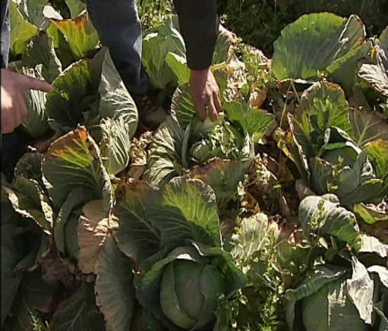 在上海市金山區(qū)的蔬果種植專業(yè)合作社,整片整片的卷心菜躺在地里。由于滯銷,有的卷心菜已經(jīng)熟過(guò)頭還沒有采摘。據(jù)了解,在這個(gè)合作社,從去年10月開始銷售第一批卷心菜開始,到現(xiàn)在只賣出去了1500噸,目前地里還有3500噸卷心菜?粗量喾N出來(lái)的菜就要爛在地里,農(nóng)戶們真是心急如焚。