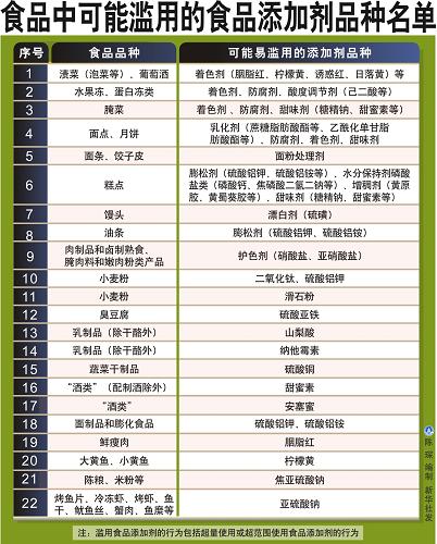 記者23日從國(guó)務(wù)院食品安全委員會(huì)辦公室獲悉,為嚴(yán)厲打擊食品生產(chǎn)經(jīng)營(yíng)中違法添加非食用物質(zhì)、濫用食品添加劑以及飼料、水產(chǎn)養(yǎng)殖中使用違禁藥物,衛(wèi)生部、農(nóng)業(yè)部等部門(mén)根據(jù)風(fēng)險(xiǎn)監(jiān)測(cè)和監(jiān)督檢查中發(fā)現(xiàn)的問(wèn)題,不斷更新非法使用物質(zhì)名單,至今已公布151種食品和飼料中非法添加名單,包括47種可能在食品中“違法添加的非食用物質(zhì)”、22種“易濫用食品添加劑”和82種“禁止在飼料、動(dòng)物飲用水和畜禽水產(chǎn)養(yǎng)殖過(guò)程中使用的藥物和物質(zhì)”的名單。
