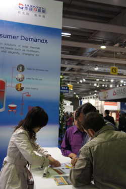據(jù)記者在現(xiàn)場(chǎng)了解,作為意大利規(guī)模最大、歐洲第三大國(guó)際性專業(yè)太陽(yáng)能展之一,維羅納太陽(yáng)能博覽會(huì)吸引了諸多知名企業(yè)前來(lái)發(fā)布新產(chǎn)品,展示新技術(shù),并開展多層面的技術(shù)交流。中國(guó)太陽(yáng)能熱利用企業(yè)參展的創(chuàng)新技術(shù)成果受到國(guó)際客商的重視,其中江蘇華揚(yáng)展示的2011年最新產(chǎn)品和熱水解決方案吸引了眾多客商前來(lái)洽談,訂單數(shù)量超過預(yù)期80%。