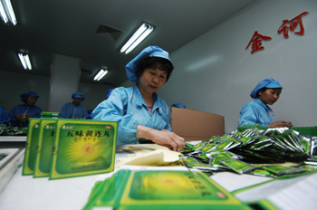 圖為青海金訶藏藥集團的工人在對藥品進行包裝。新華社記者 吳光于/攝 |