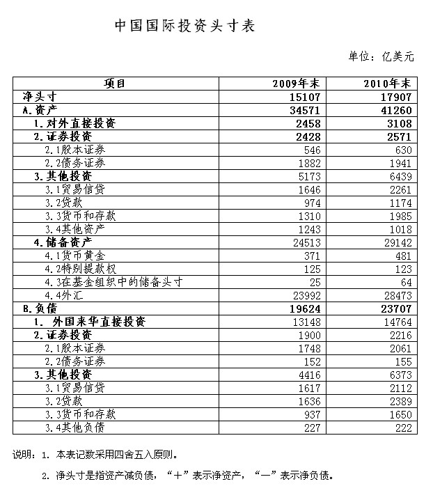 日前,國家外匯管理局公布了2010年末中國國際投資頭寸表。