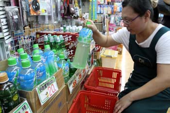 5月26日,臺(tái)灣高雄市一家賣場(chǎng)的工作人員將運(yùn)動(dòng)飲料下架。新華社發(fā) |