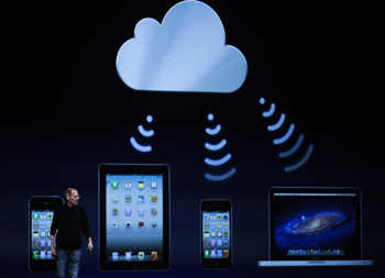 在舊金山舉行的蘋(píng)果全球開(kāi)發(fā)者大會(huì)上,正在休病假的蘋(píng)果首席執(zhí)行官史蒂夫·喬布斯親自登臺(tái)介紹了iCloud,并將它稱(chēng)為蘋(píng)果的“下一個(gè)偉大遠(yuǎn)見(jiàn)”。在用戶(hù)對(duì)使用蘋(píng)果iOS系統(tǒng)的移動(dòng)設(shè)備進(jìn)行充電時(shí),系統(tǒng)會(huì)自動(dòng)將用戶(hù)的文檔、購(gòu)買(mǎi)的音樂(lè)、應(yīng)用程序、照相簿和系統(tǒng)設(shè)置等進(jìn)行云端備份,再自動(dòng)推送到用戶(hù)的所有設(shè)備,用戶(hù)在蘋(píng)果的智能手機(jī)、平板電腦和臺(tái)式機(jī)上都可以同步獲得這些內(nèi)容。每位用戶(hù)目前可以獲得5G的免費(fèi)存儲(chǔ)空間,從蘋(píng)果購(gòu)買(mǎi)的音樂(lè)、應(yīng)用程序和電子書(shū)不占用免費(fèi)空間,收費(fèi)的大容量云存儲(chǔ)方案將在今年秋季推出。