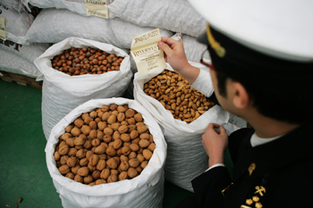 今年以來(lái)大連海關(guān)查獲繞關(guān)走私案件呈增長(zhǎng)態(tài)勢(shì)。圖為大連海關(guān)查獲的利用繞關(guān)和低報(bào)價(jià)格等方式走私干果案的現(xiàn)場(chǎng)。張妮/攝 |