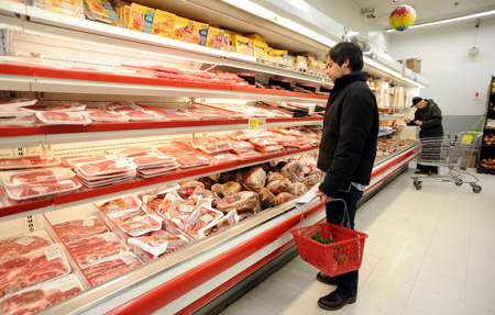 美國商務部27日稱,由于擔憂就業(yè)形勢低迷及物價上漲,美國消費者大多將消費計劃延期,5月個人消費支出月率持平,增幅創(chuàng)2010年6月以來最低水平。而5月個人消費支出價格指數(shù)較上年同期上升了2.5%,創(chuàng)2010年1月來最大年率漲幅。這意味著美國經濟不僅復蘇仍舊乏力,而且通脹威脅不減。 圖為一位男子在紐約布魯克林的一家超市里購買食品。