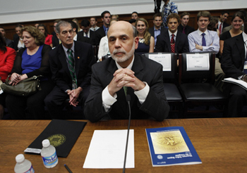 圖為伯南克13日在美國(guó)國(guó)會(huì)山舉行的“貨幣政策和經(jīng)濟(jì)形勢(shì)”聽(tīng)證會(huì)上作證。 “美國(guó)通縮危險(xiǎn)可能重現(xiàn),這意味著更多的貨幣政策支持!辈峡吮硎,如果2011年下半年美國(guó)經(jīng)濟(jì)持續(xù)疲軟,美聯(lián)儲(chǔ)將啟動(dòng)更多刺激措施,包括繼續(xù)購(gòu)買(mǎi)美國(guó)債券釋放流動(dòng)性等。張媛/文 路透/圖 |