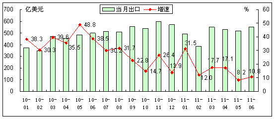 圖1 2010年以來我國電子信息產(chǎn)品月度出口情況 |