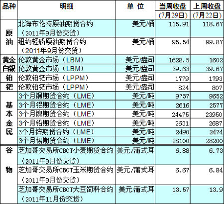 · 國際大宗商品期貨價(jià)格明細(xì)表[2011-07-25] 2011-07-25