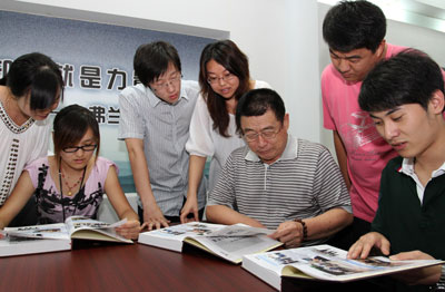 | 西王村黨委書(shū)記王勇指導(dǎo)村里的青少年學(xué)習(xí)村志。 |
