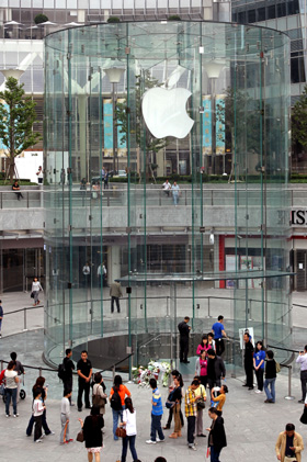 美國(guó)蘋果公司前首席執(zhí)行官史蒂夫·喬布斯逝世的消息引起全球關(guān)注和無(wú)數(shù)“蘋果迷”的哀思!耙?yàn)橛兴菰锏氖澜缬辛缩r活。”網(wǎng)民認(rèn)為,“蘋果教父”喬布斯的傳奇一生為世人留存了巨大的精神財(cái)富,最好的紀(jì)念方式無(wú)疑是將這些精神付諸于行動(dòng)。目前中國(guó)的創(chuàng)業(yè)者層出不窮,希望能夠?qū)W習(xí)和借鑒喬布斯的創(chuàng)新精神,從而激勵(lì)和推動(dòng)下一個(gè)“神話”的誕生。圖為顧客在上海浦東陸家嘴“蘋果”旗艦店前流連。記者