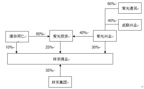 2010年7月6日,清華同仁、紫光興業(yè)、紫光投資分別取得林東煤業(yè)10%、25%、30%的股權(quán),合計(jì)取得林東煤業(yè)65%的股權(quán)。