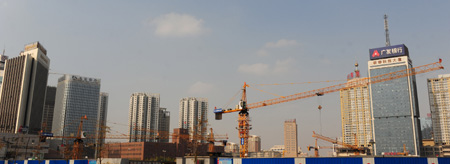國家統(tǒng)計局10月18日發(fā)布2011年前三季度經濟數據,國民經濟保持平穩(wěn)較快發(fā)展。其中,全國房地產開發(fā)投資44225億元,同比增長32.0%,比上半年回落0.9個百分點。圖為沈陽市一個工地正在施工之中。