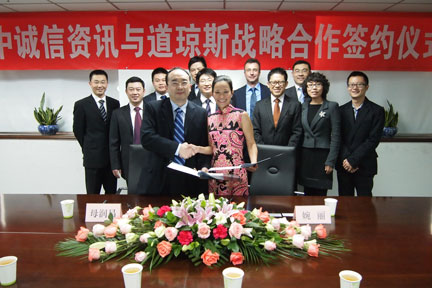 中誠信資訊與道瓊斯新聞社28日在北京金融街舉行戰(zhàn)略合作簽約儀式。中誠信資訊金融信息終端中將引入道瓊斯獨(dú)家債券實(shí)時資訊,雙方攜手為中國固定收益市場投資者提供權(quán)威的債券資訊與分析平臺。