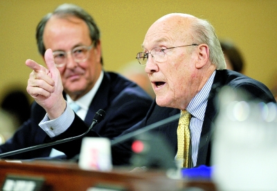 11月1日,在美國首都華盛頓國會山,共和黨前聯(lián)邦參議員艾倫·辛普森出席削減赤字特別委員會舉行的聽證會。 美國多位財政和預算問題專家當日表示,削減美國政府高企的財政赤字刻不容緩,由美國民主黨和共和黨議員組成的有減赤“超級委員會”之稱的削減赤字特別委員會應(yīng)當采取果斷、大膽的行動來減少美國赤字以穩(wěn)定市場信心。