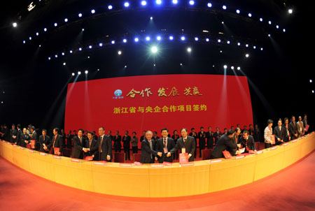 圖為浙江省與央企合作項(xiàng)目簽約現(xiàn)場。