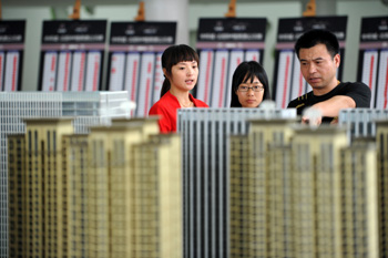 在合肥某樓盤銷售現(xiàn)場,幾名市民在挑選房型。新華社記者 劉軍喜