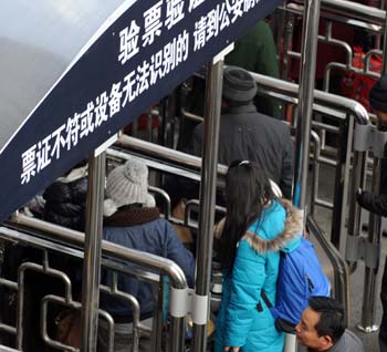 隨著客流高峰的日益臨近,上海鐵路部門仍在為應(yīng)對大客流做準(zhǔn)備。鐵路上海南站值班站長周忠杰說:“今天是春運第一天,客流量不算大,等客流高峰到來的時候,會面臨真正的考驗!