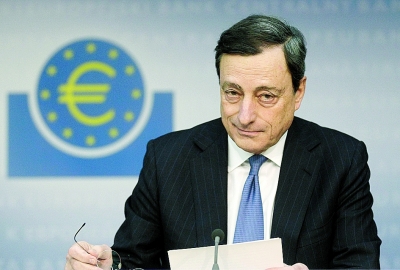 數(shù)據(jù)顯示11日歐元區(qū)銀行在歐洲央行的隔夜存款超過4800億歐元,顯示出歐元區(qū)銀行當(dāng)前依然十分謹(jǐn)慎。2月份歐洲央行將就三年期貸款進(jìn)行第二次招標(biāo),因此此次歐洲央行議息會議保持貨幣政策不變,以觀察上次降息和注入流動性等措施的效果,也符合會前各方預(yù)期。圖為歐洲央行行長德拉吉出席發(fā)布會。