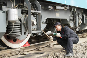 神華集團(tuán)包神鐵路公司春運期間加強(qiáng)電車運用管理,深入探討電力機(jī)車全面運用后機(jī)車交路方式和乘務(wù)員乘務(wù)方式,優(yōu)化電力機(jī)車運用方案,確保旅客運輸和貨物運輸行車安全。圖為:神華集團(tuán)技術(shù)能手、包神鐵路公司電力機(jī)車司機(jī)趙樂出乘前認(rèn)真檢查機(jī)車。資料照片 |