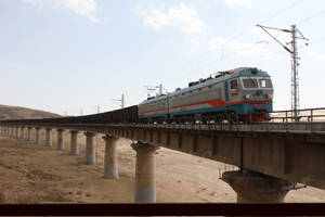 “東線運量9740萬噸,奮斗目標(biāo)9900萬噸;北線運量必保4800萬噸,力爭5000萬噸”。這是神華包神鐵路公司領(lǐng)導(dǎo)班子給神華集團(tuán)的莊嚴(yán)承諾。節(jié)日期間,包神鐵路公司確保東線裝車快進(jìn)快出,北線優(yōu)先保證過古店口神華煤運輸和煤制油、煤化工原料及成品運輸,積極組織區(qū)內(nèi)、管內(nèi)電煤運輸。圖為滿載電煤的運煤專列通過響沙灣大橋。資料照片 |