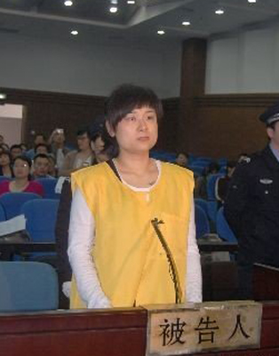 2009年4月16日,浙江省金華市中級人民法院首次開庭審理吳英,檢察機關(guān)指控吳英集資詐騙人民幣達3.89億元,而吳英代理人當庭為其作無罪辯護。這起倍受關(guān)注的案件吸引了近30家媒體記者及近200名群眾現(xiàn)場旁聽。圖為在法庭上的吳英。