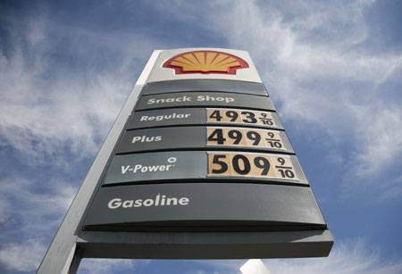 這是2月21日在美國(guó)洛杉磯一個(gè)加油站拍攝的油價(jià)顯示牌。