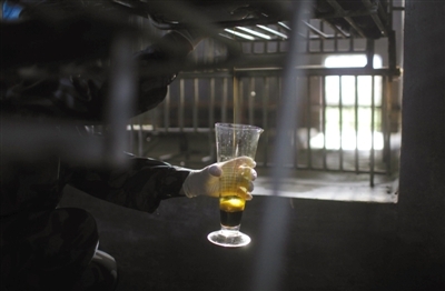 工作人員拔出引流針,然后再次為瘺口消毒,隨后將收集到的膽汁集中到玻璃容器中。歸真堂熊膽汁可生產(chǎn)熊膽粉、膠囊、清甘茶、熊膽茶等多種產(chǎn)品。王東明