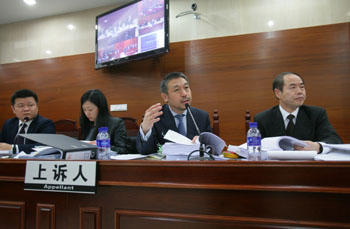 2月29日,蘋果公司與深圳唯冠iPad商標(biāo)糾紛案二審在廣東省高級(jí)人民法院開庭,圖為上訴人律師在庭審上做陳述。記者